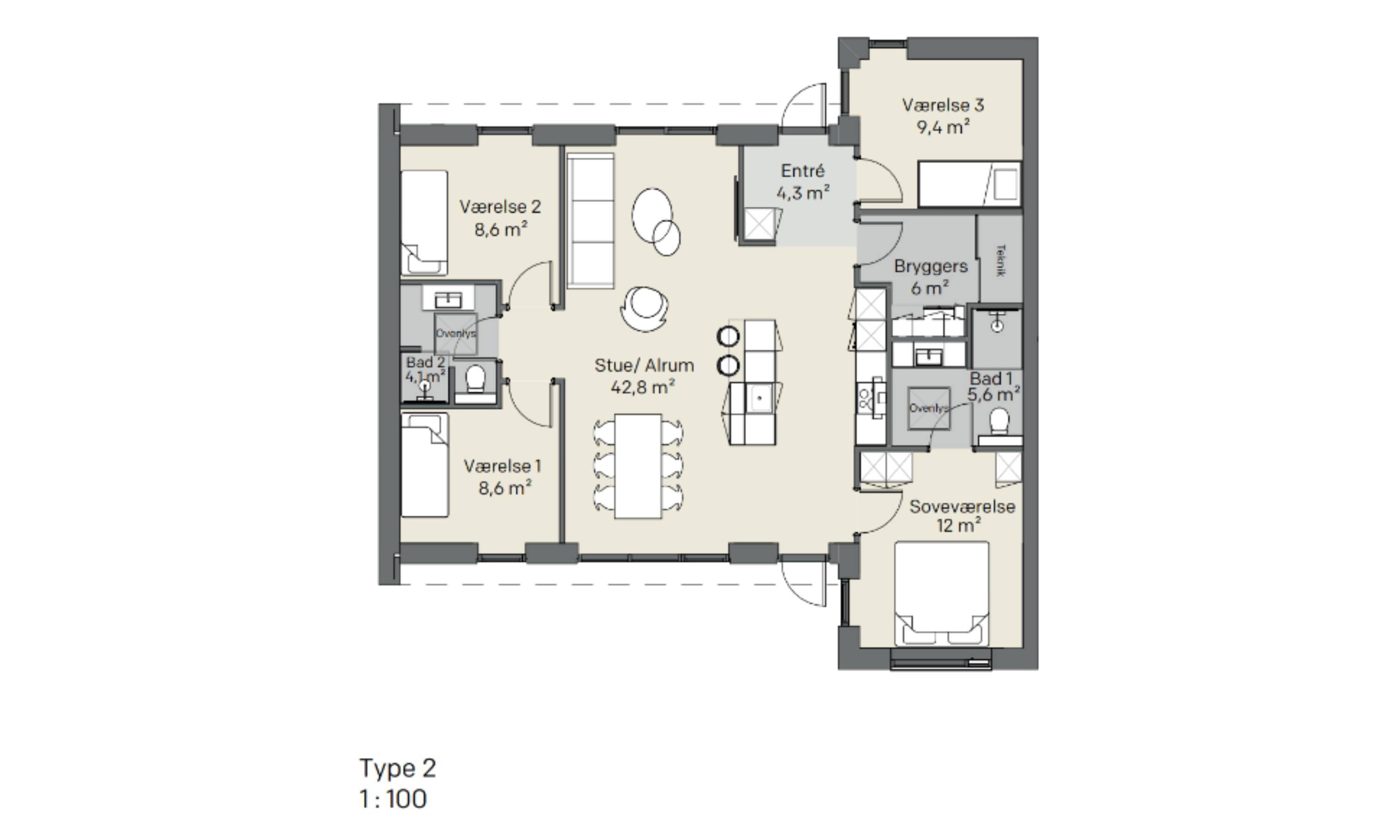 I vores 5-værelses rækkehuse i Skive får du ikke bare et hus, men et hjem, hvor der er plads til hele livet. Med 120 m², fire værelser og to badeværelser er der masser af plads til at leve, vokse og dele gode stunder med familien. Hver dag bliver lettere, når både børn og voksne har deres egen plads, og når fællesområderne er åbne og indbydende. De to terrasser giver dig mulighed for at nyde både morgen- og aftensolen, mens haven danner ramme om både leg og afslapning. Her er det nemt at finde ro og samtidig være en del af et livligt fællesskab, hvor både voksne og børn kan trives. I Skive får du mere end bare en bolig – du får et hjem i et nabolag, hvor du kan leve livet på dine egne præmisser, samtidig med at du er tæt på både natur og byens muligheder.