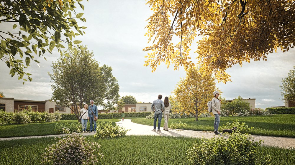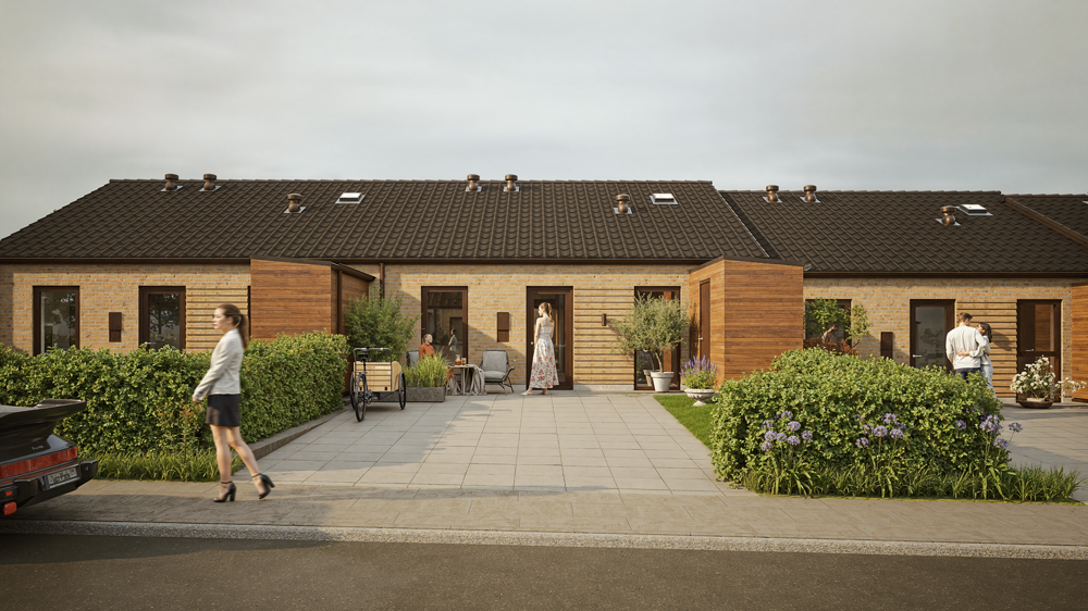 I den første etape opføres 36 rækkehuse sammen med et fælleshus, som bliver hjertet i området – et sted til både fællesskab og stille stunder.